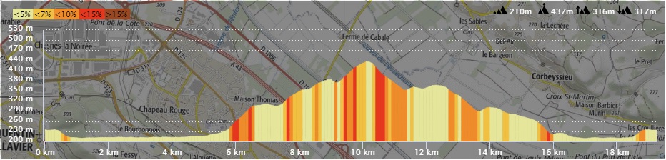 20 KM avec 320 m de D+ pour les plus grands avec un petit exercice de passages d'obstacles.