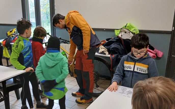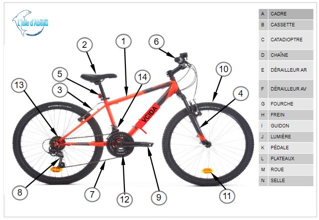Initiation qui débute par le repérage et le nommage des différents composants du vélo.